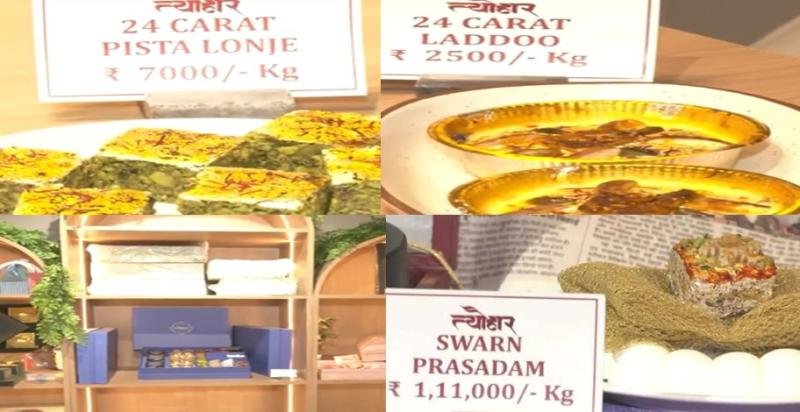 दीवाली नजदीक आते ही राजस्थान के जयपुर में स्थित ‘त्योहार’ शॉप काफी चर्चा में आ गई है। जयपुर के वैशाली नगर में स्थित इस दुकान में 24 कैरेट गोल्ट से बनी ‘स्वर्ण भस्म पाक’ और चांदी से बनी ‘चांदी भस्म पाक’ जैसी मिठाइयां उपलब्ध हैं। इनकी कीमत 45,000 से 1.11 लाख प्रति किलोग्राम है।